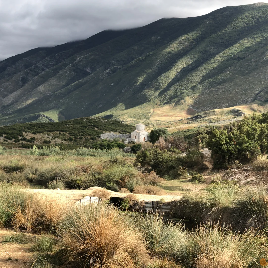 Албания. Достопримечательности Орикума Castle of Gjon Boçari и церковь Мармирой.